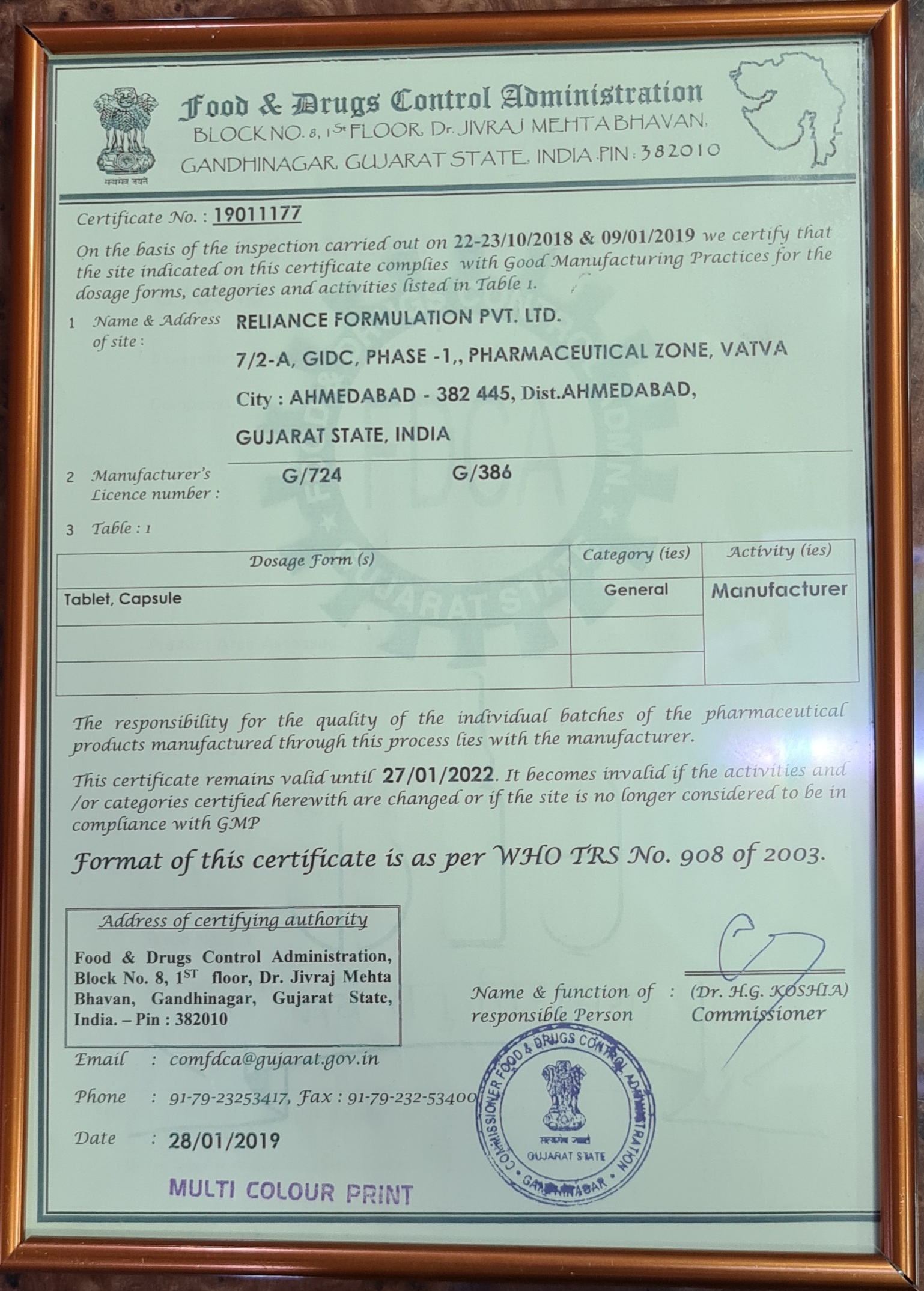 Having made its name in the Indian Pharma Industries as one of the most trusted brand, RELIANCE has scaled the heights of success exponentially. As a leading player in terms of modernization of its plants, machineries and manufacturing processes, it has come up with top-notch products and services to its adored customers so far. The specialization of the company lies in the formulation of absolute psychotropic range of products, Ayurvedic and Herbal products as well as a variety of antibiotics, enzymes and vitamins. For the formation of Tablets and Capsules in general section, the Company has attained the approval for facilities from WHO.